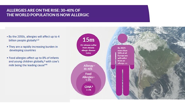 در حال حاضر 30 تا 40 درصد مردم آلرژی دارند که 5% آلرژی غذایی و 2 تا 5% آلرژی به شیرگاو ( CMA )دارند .